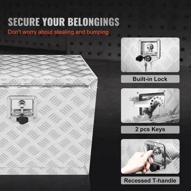 VEVOR Underbody Truck Box, 24"×17"×18" Pickup Storage Box, Heavy Duty Aluminum Diamond Plate Tool Box with Lock and Keys, Waterproof Trailer Storage Box with T-Handle Latch for Truck, Van, Trailer