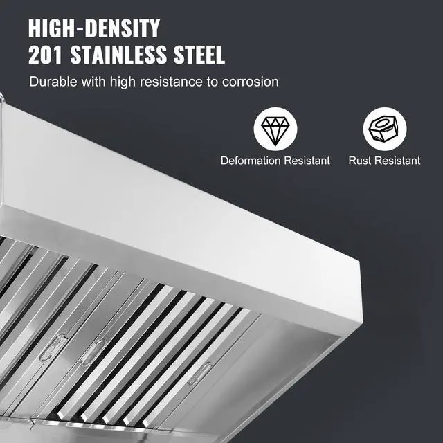 VEVOR Commercial Exhaust Hood, 8FT Food Truck Hood Exhaust, 201 Stainless Steel Concession Trailer Hood with 4 Detachable U-shaped Grid Oil Filter Mesh, Rust Resistant Vent Hood for Kitchen Restaurant
