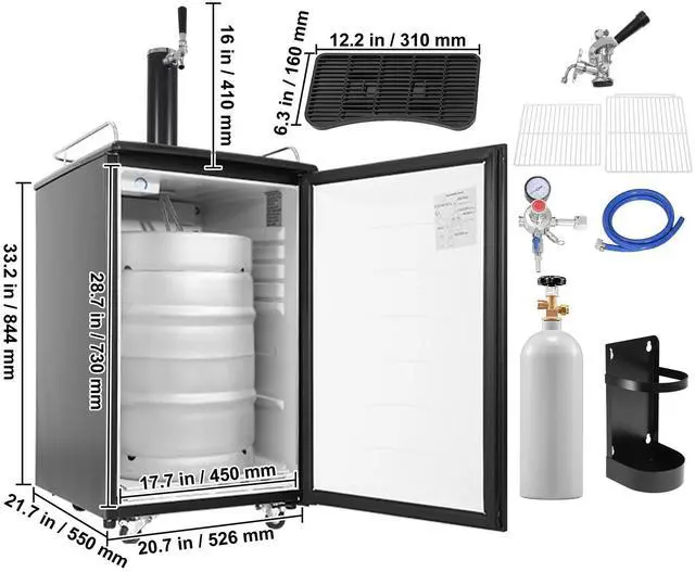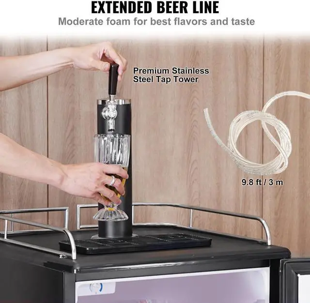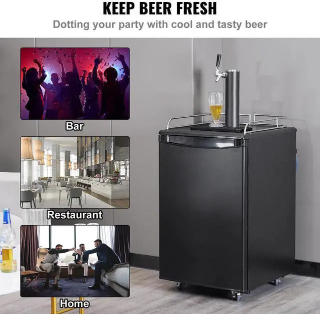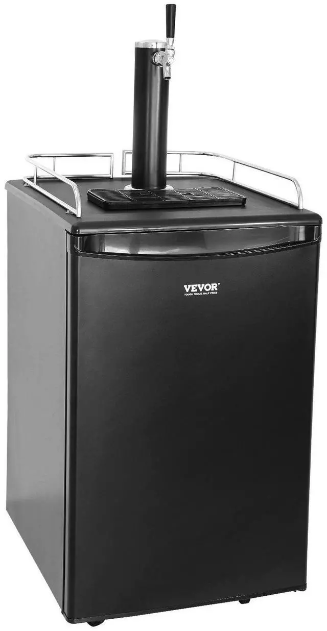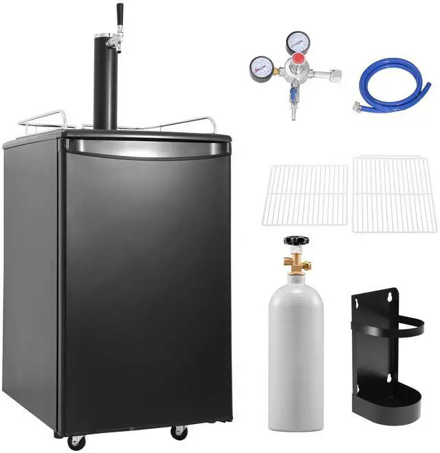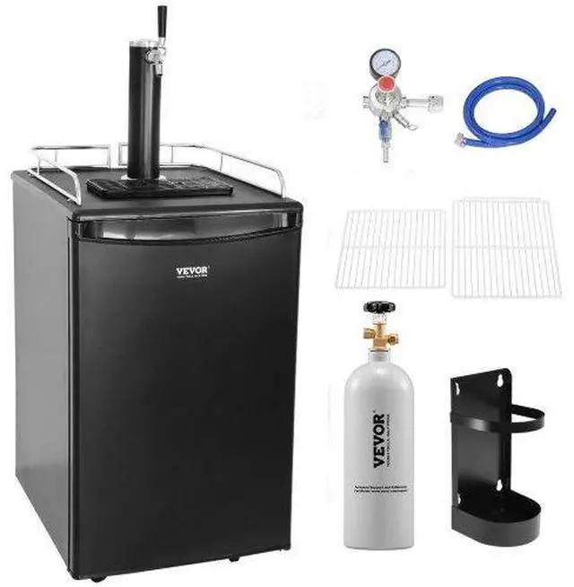 VEVOR Beer Kegerator, Single Tap Draft Beer Dispenser, Full Size Keg Refrigerator With Shelves, CO2 Cylinder, Drip Tray & Rail, 32°F- 50°F Temperature Control, Holds 1/6, 1/4, 1/2 Barrels, Black