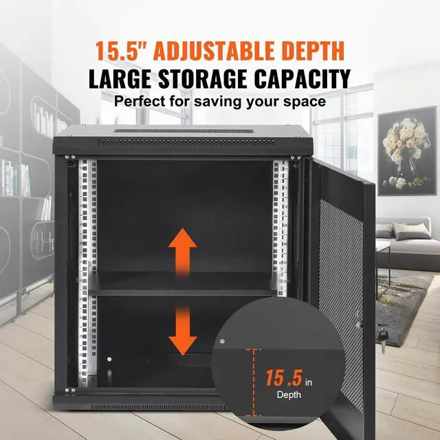 Color: Black,Item Model Number: W36412,Height: 12U,Installation Width Standard: 19 in,Net Weight: 43 lbs / 19.28 kg,Depth: 15.5 in,Wall-Mounted Load-Bearing: 100 lbs,Ground-Mounted Load-Bearing: 200 lbs,Product Size: 25.2 x 17.7 x 23.6 in / 640 x 450 x 600 mm