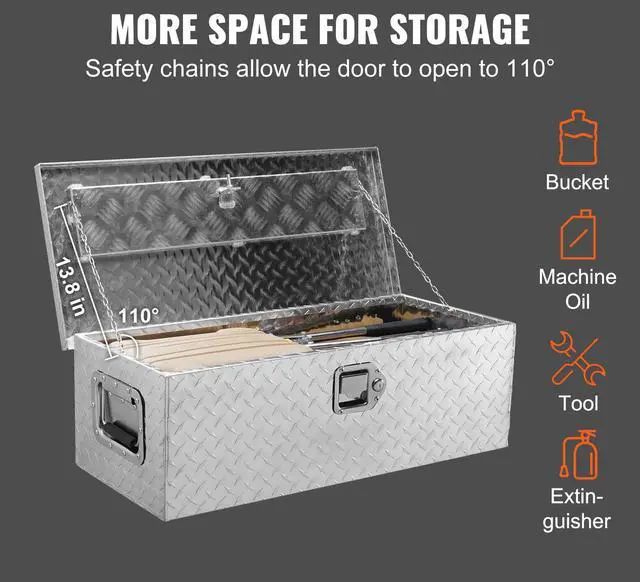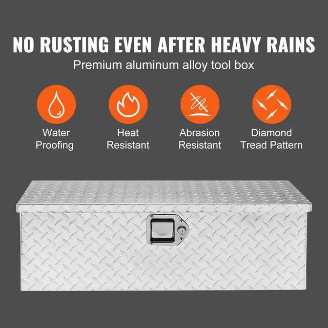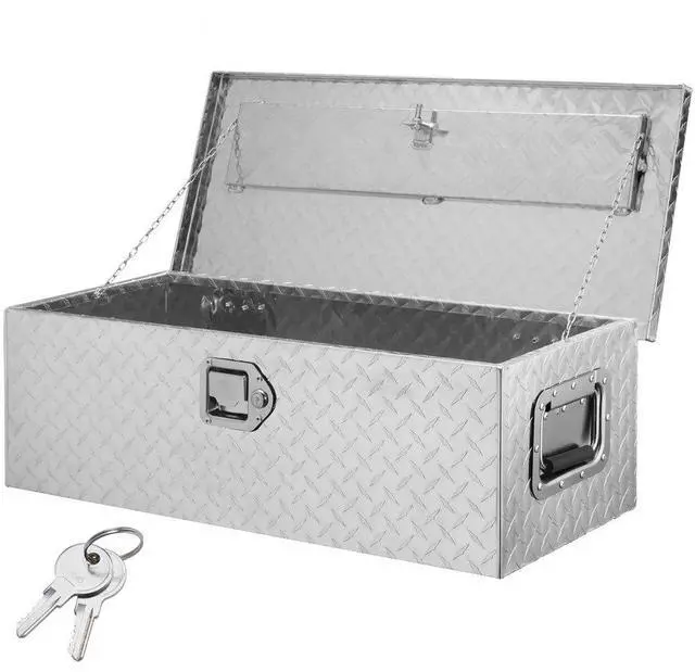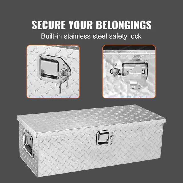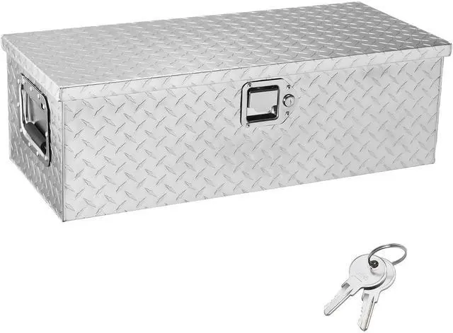 VEVOR Heavy Duty Aluminum Truck Bed Tool Box, Diamond Plate Tool Box with Side Handle and Lock Keys, Storage Tool Box Chest Box Organizer for Pickup, Truck Bed, RV, Trailer, 30"x13"x9.6", Silver