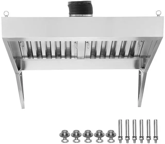VEVOR Commercial Exhaust Hood, 5FT Food Truck Hood Exhaust, 201 Stainless Steel Concession Trailer Hood with 2 Detachable U-shaped Grid Oil Filter Mesh, Rust Resistant Vent Hood for Kitchen Restaurant