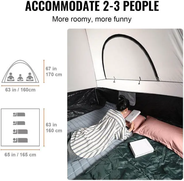Applicable Position: Rear Cabin of Pickup,Tent Structure: Double-layer Tent,Waterproof Grade: PU2000 mm,Internal Dimensions (L x W x H): 63 x 65 x 67 in/160 x 165 x 170 cm,Color: Gray+White,Item Model Number: TBT-5560,Item Weight: 11 lb/4.8 kg,Package Size: 10 x 10 x 18 inch/26 x 26 x 46 cm