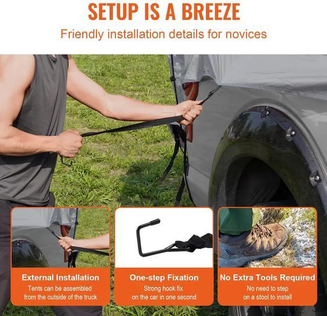 VEVOR Truck Bed Tent, 5.5'-6' Pickup Truck Tent with Rain Layer and Carry Bag, Waterproof PU2000mm Double Layer Truck Tent for Camping, Accommodate 2-3 Person, for Camping Traveling Outdoor Activities