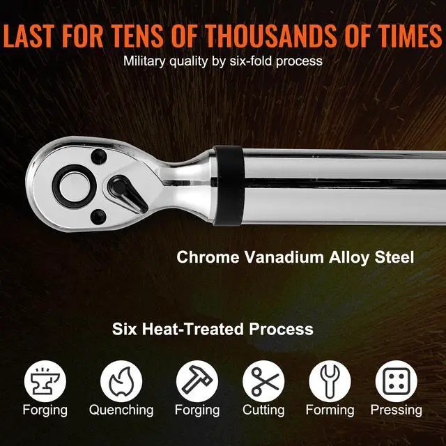 The preset torque accuracy of ±2% meets the demands of precision instruments and high-end automotive maintenance. Featuring a 72-tooth ratchet, this torque wrench kit boasts military-grade quality.