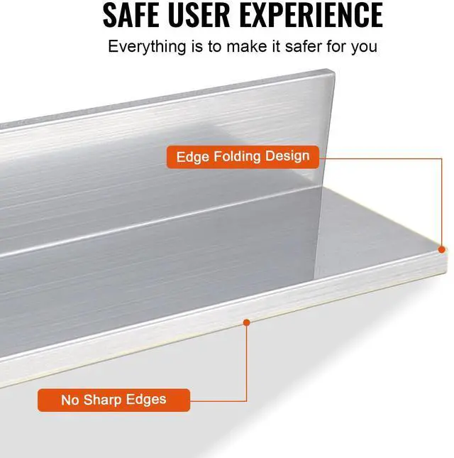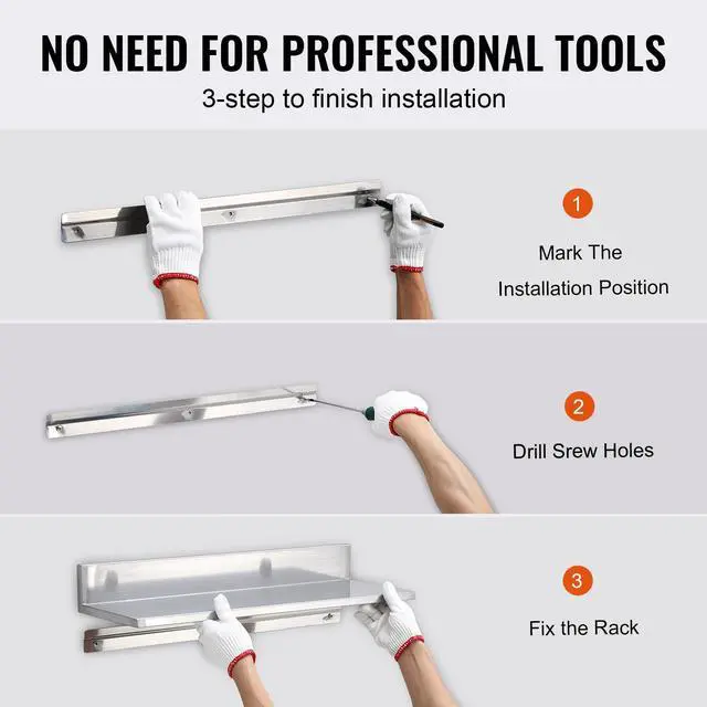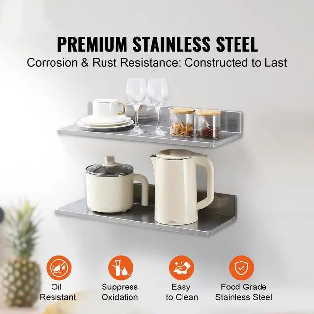 VEVOR 8.6" x 24" Stainless Steel Shelf, Wall Mounted Floating Shelving with Backsplash, 44 lbs Load Capacity Commercial Shelves, Heavy Duty Storage Rack for Restaurant, Kitchen, Bar, Home, and Hotel (2 Packs)