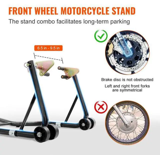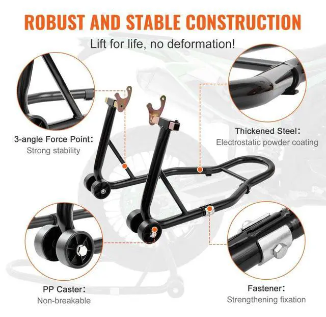 VEVOR Motorcycle Stand Lift, 850lbs Front Rear Combo Stand Lift Stand, Front and Rear Wheel Fork Stand, U+L Fork Swingarm Spool, Compatible with Most Yamaha Honda Kawasaki Suzuki Motorcycles, Black