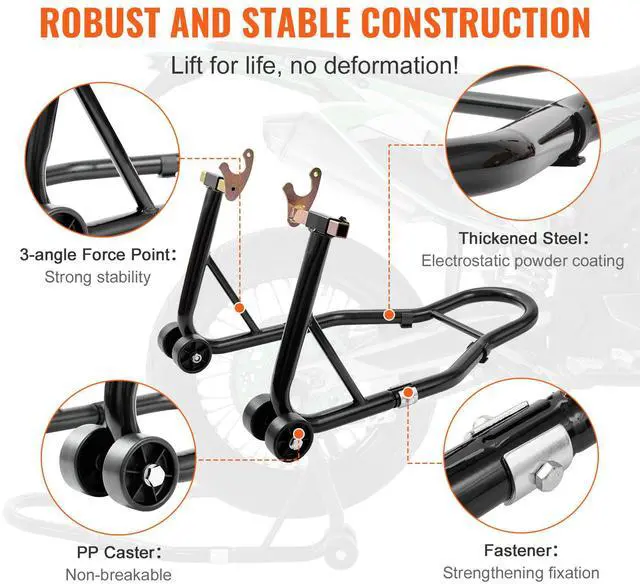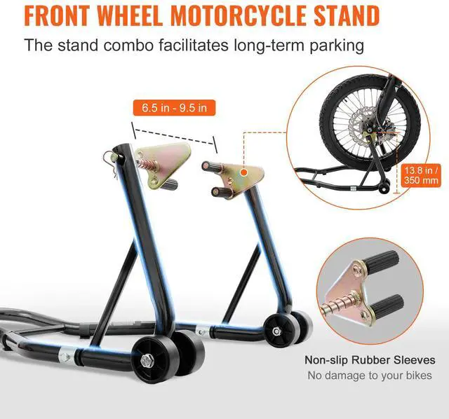 VEVOR Motorcycle Stand Lift, 850lbs Front Rear Combo Stand Lift Stand, Front and Rear Wheel Fork Stand, U+L Fork Swingarm Spool, Compatible with Most Yamaha Honda Kawasaki Suzuki Motorcycles, Black