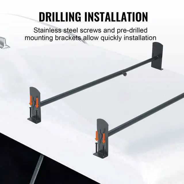 • VEVOR Van Roof Ladder Rack, 2 Bars Alloy Steel Roof Racks, 500 LBS Capacity Rain-Gutter Roof Rack, Adjustable Length 35.8"-57.5", Van Ladder Rack Compatible with Chevrolet Express, GMC Savana, etc
