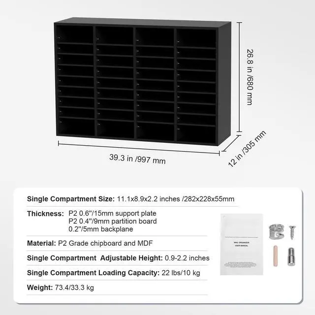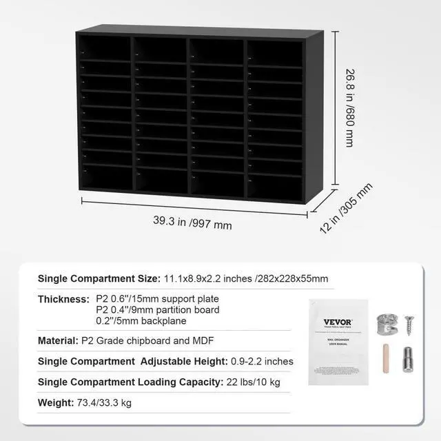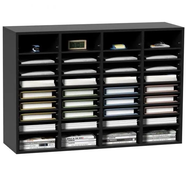• VEVOR Wood Literature Organizer, 36 Compartments, File Sorter with Removable Shelves, Mailboxes Slot for Office Home Classroom Mailrooms Organization, EPA Certified, Black