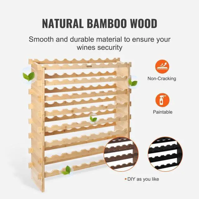 VEVOR 72 Bottle Stackable Modular Wine Rack Bamboo Wood Display Shelf 8-Tier