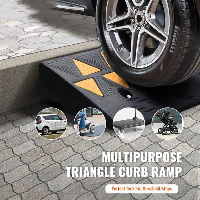 VEVOR Rubber Curb Ramp 3.7" Rise Height Sidewalk Curb Ramp, 10" Width 39.4" Length Driveway Ramp for Curb, 15T Heavy Duty Rubber Ramp for Forklifts, Trucks, Buses, Cars, Wheelchairs, Bikes