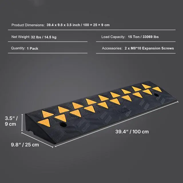 Load Capacity: 33069 lbs/15 tons,Item Model Number: S001,Product Weight: 32 lbs/14.5 kg,Quantity: 1 Pack,Material: Rubber,Product Size: 39.4" L x 9.8" W x 3.7" H/100 x 25 x 9.4 cm