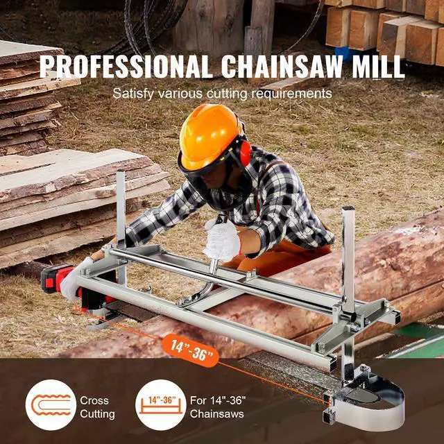 VEVOR Chainsaw Mill, Portable Sawmill 14"-36" Guide Bar, Galvanized Steel Chainsaw Planking Mill with 0.2"-11.81" Cutting Thickness, Wood Lumber Cross Cutting Saw Mill for Builders and Woodworkers