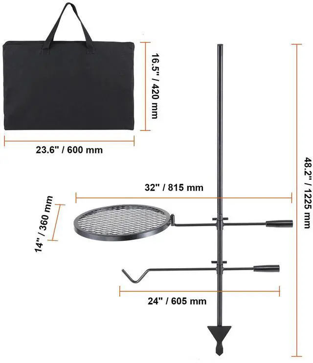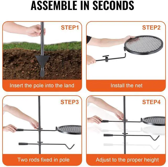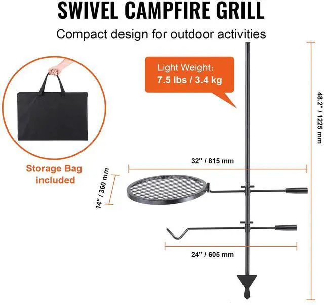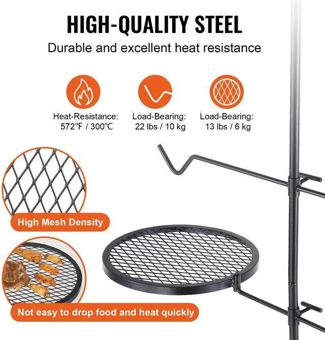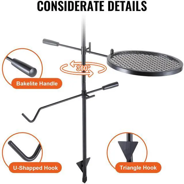 VEVOR Swivel Campfire Grill, Fire Pit Grill Grate over Fire Pits, Heavy Duty Steel Grill Grates, 360° Adjustable Open Fire Outdoor Cooking Equipment, Portable Camp Fire Racks for Camping Outdoor BBQ