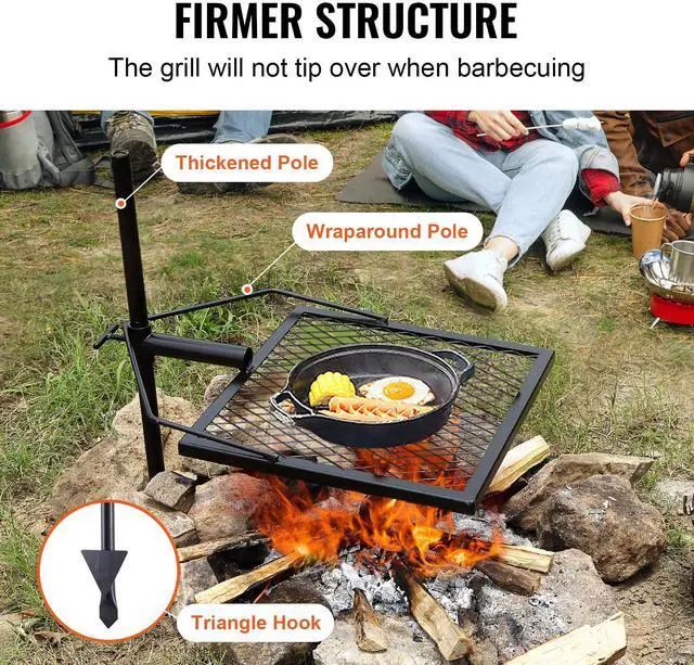 VEVOR Swivel Campfire Grill, Fire Pit Grill Grate over Fire Pits, Heavy Duty Steel Grill Grates, 360° Adjustable Open Fire Outdoor Cooking Equipment, Portable Camp Fire Racks for Camping Outdoor BBQ