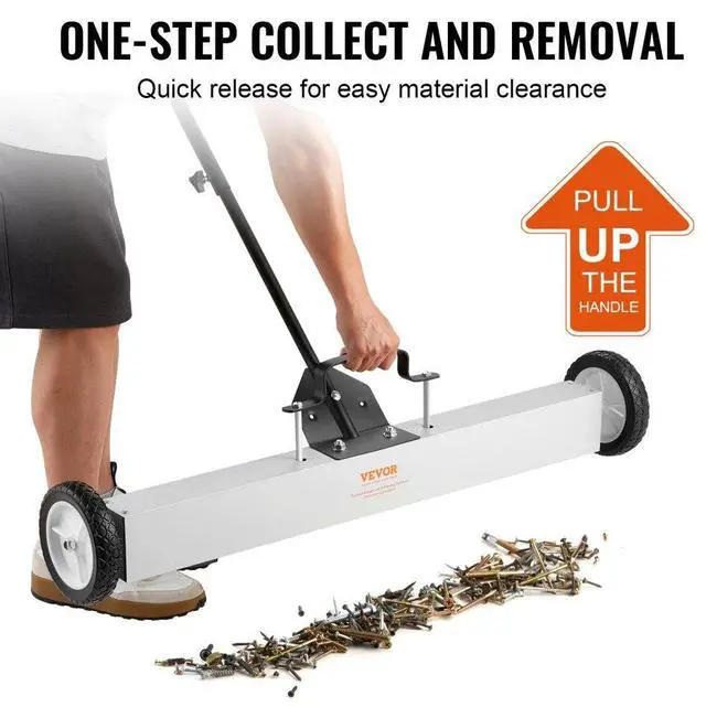 • VEVOR 55Lbs Rolling Magnetic Sweeper with Wheels,Push-Type Magnetic Pick Up Sweeper, 24-inch Large Magnet Pickup Lawn Sweeper with Telescoping Handle, Easy Cleanup of Workshop Garage Yard