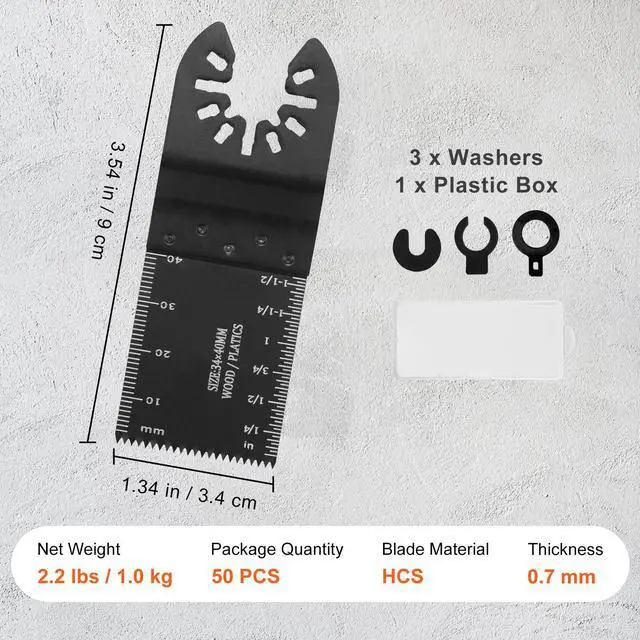 VEVOR 50PCS Oscillating Saw Blades, Universal Quick Release Oscillating Saw Blades, Multitool Tool Blades for Wood Plastic Aluminum, Fit Dewalt Bosch Milwaukee Hitachi Chicago Craftsman