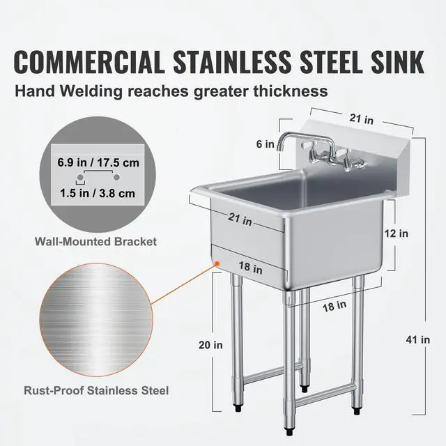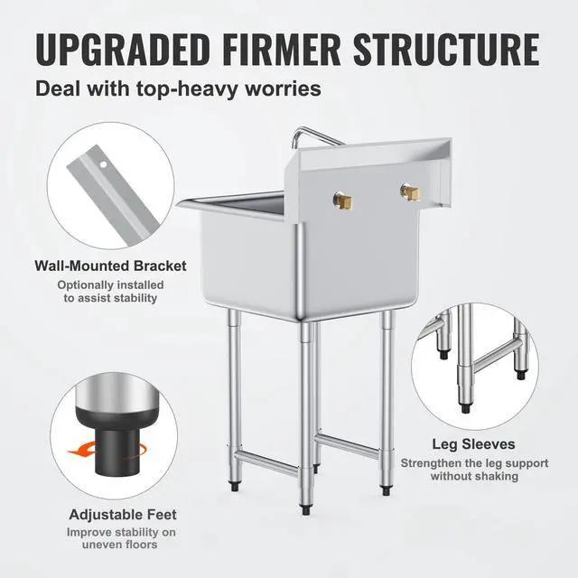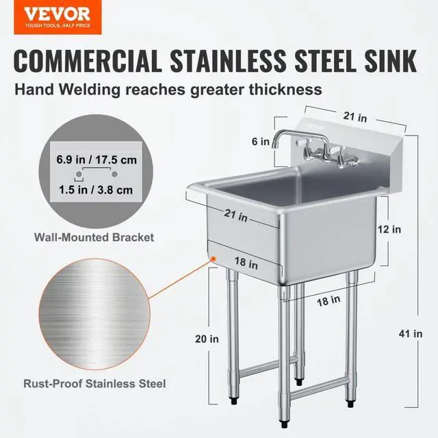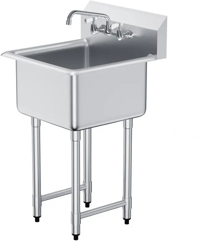 VEVOR Stainless Steel Prep & Utility Sink, 1 Compartment Free Standing Small Sink Include Faucet & legs, 21"x41" Commercial Single Bowl Sinks for Garage, Restaurant, Kitchen, Laundry, NSF Certified