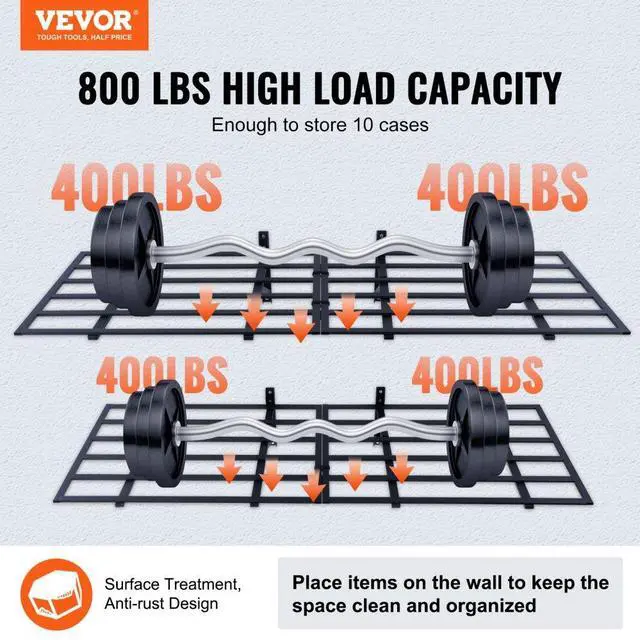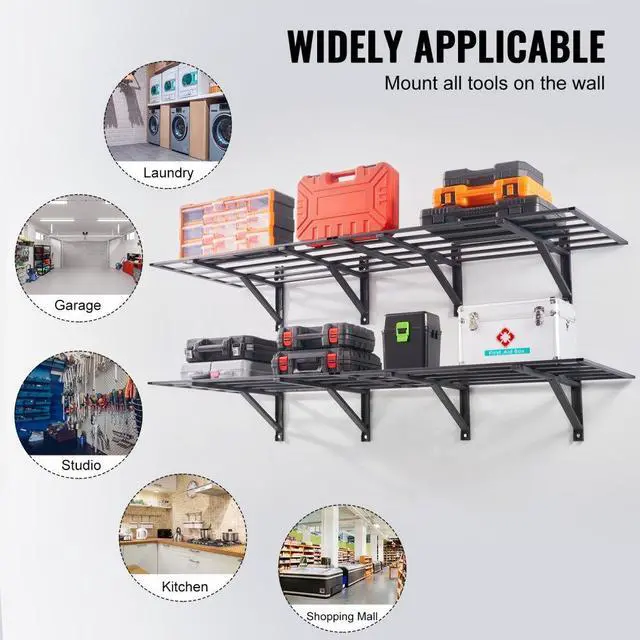 VEVOR Garage Storage Shelving, 2 Pack, 6 x 2 ft Heavy Duty Garage Shelves Wall Mounted, 1600 lbs Load Capacity(Total) Garage Storage Rack Floating Shelves, Suitable for Shop, Shed, Garage Storage