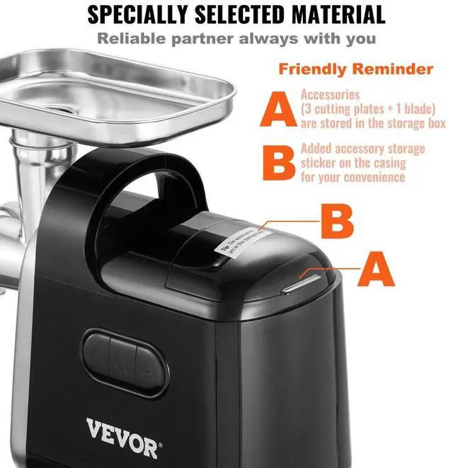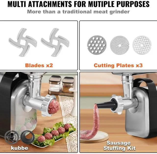 VEVOR Electric Meat Grinder, 6.6 Lb/Min, 550W2200W MAX) Industrial Meat Mincer with 2 Blade, 3 Grinding Plates, Sausage Maker & Kubbe Kit ABS + Stainless Steel Commercial Meat Grinder, ETL Listed