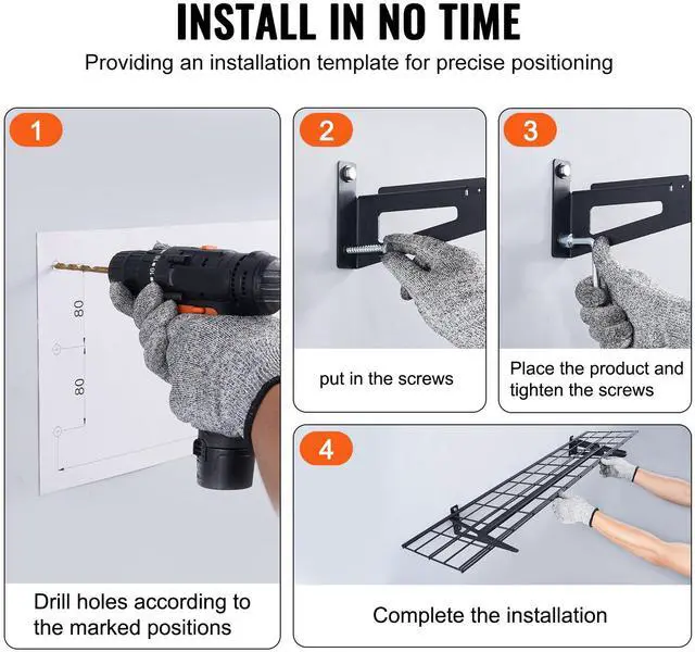 VEVOR Garage Storage Shelving, 2 Pack, 4 x 1 ft Heavy Duty Garage Shelves Wall Mounted, 400 lbs Load Capacity(Total) Garage Storage Rack Floating Shelves, Suitable for Shop, Shed, Garage Storage