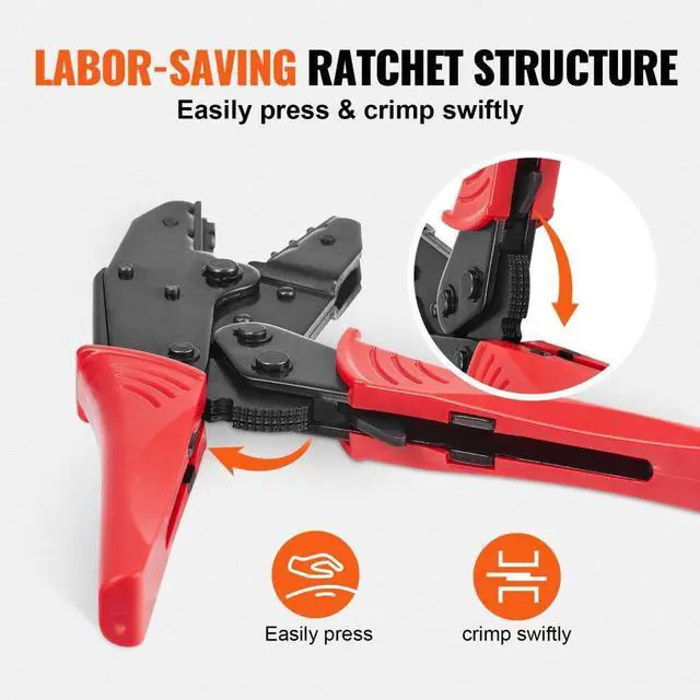 VEVOR Ratcheting Crimping Tool Set For Insulated Electrical Connectors AWG22-10 with Wire Stripper and 210pcs Heat Shrink Tubes Labor-Saving Ratcheting Wire Crimp Pliers