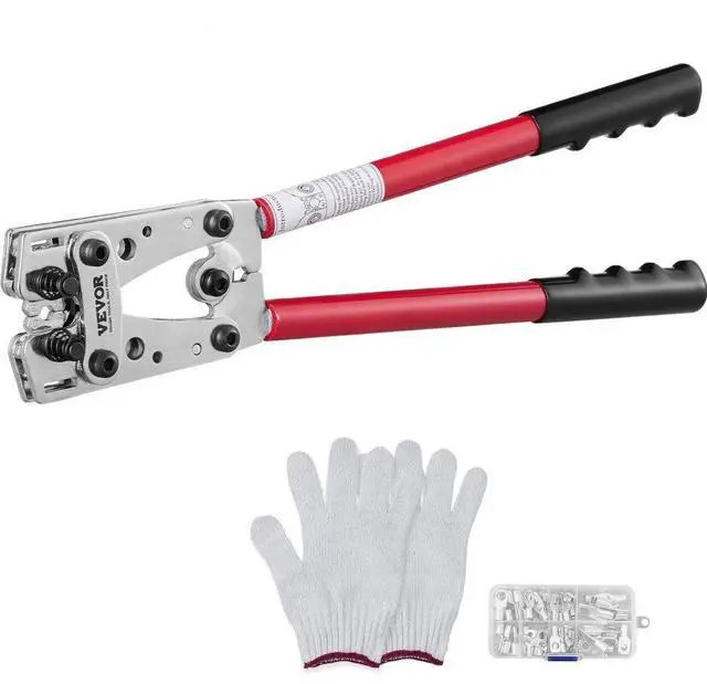 VEVOR Battery Cable Lug Crimping Tool, 10-1/0 AWG with Heavy Duty Wire Lugs, with 60PCS Aluminum Ring Connectors Terminals 6 Wire Sizes Crimping Die Aluminum Terminal Battery Lug Crimper