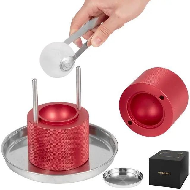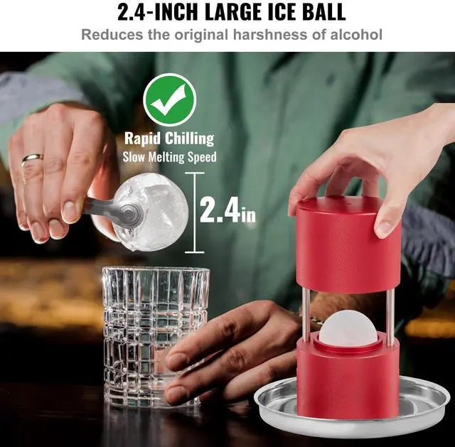 VEVOR Ice Ball Press, 2.4" Ice Ball Maker, Aircraft Al Alloy Ice Ball Press Kit for 60mm Ice Sphere, Ice Press with Tong and Drip Tray, for Whiskey, Cocktail, Bourbon, Scot on Party & Holiday, Red