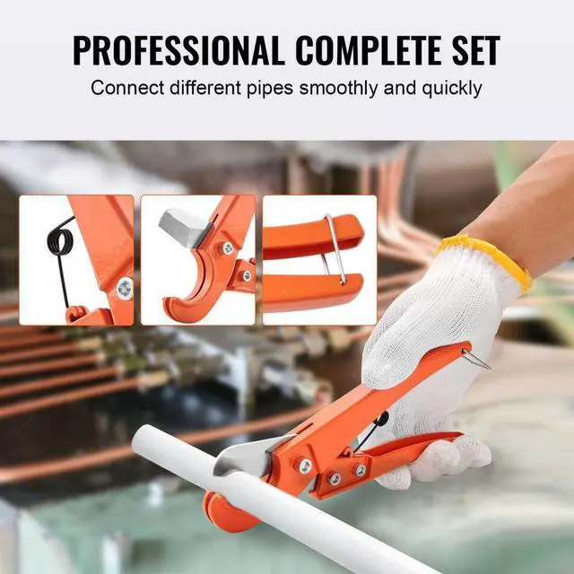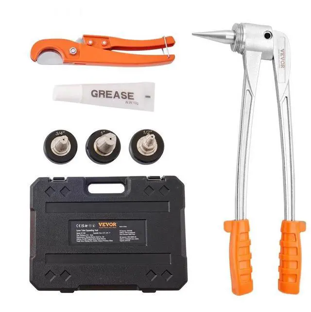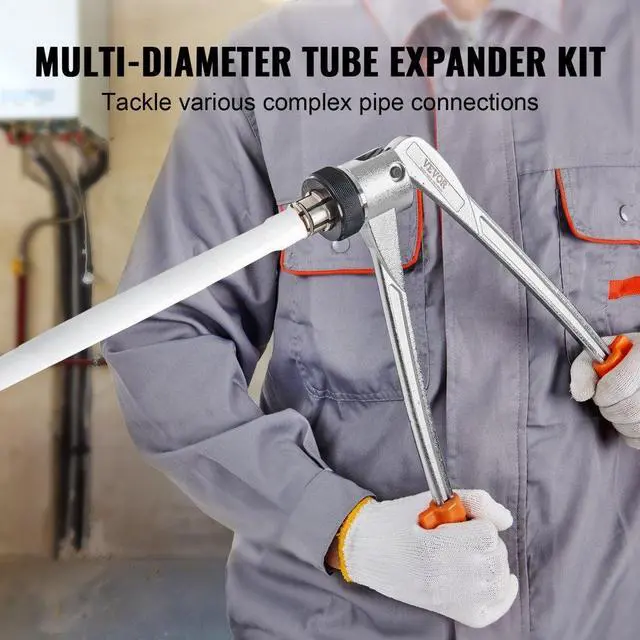 VEVOR Pipe Tube Expander, 1/2", 3/4", 1" OD PEX Tubing Expander, Professional Manual Lever PEX Tools Expander, with 3 Expansion Heads, Pipe Cutter for PEX Tubes