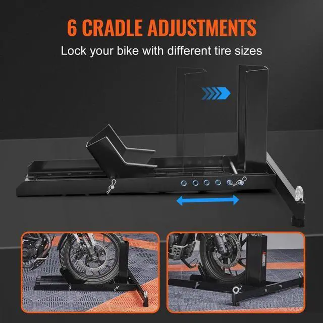 VEVOR Motorcycle Wheel Chock Upright, 1800 lbs Capacity, Heavy-duty Steel Motorcycle Front Wheel Stand with 6 Adjustable Holes, For 15"-22" Off-Road Motorcycles, Standard Motorcycles