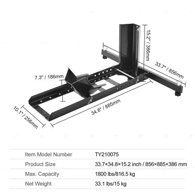 Compatible Tire Width:3-8 inch/76.2-203.2 mm,Item Model Number: TY210075,Compatible Hub Diameter:15-22 inch/381-558.8 mm,Max. Capacity:1800lbs/816.5 kg,Net Weight:33.1lbs/15 kg,Product Size:33.7×33.8×16.5 inch/855×860×420 mm
