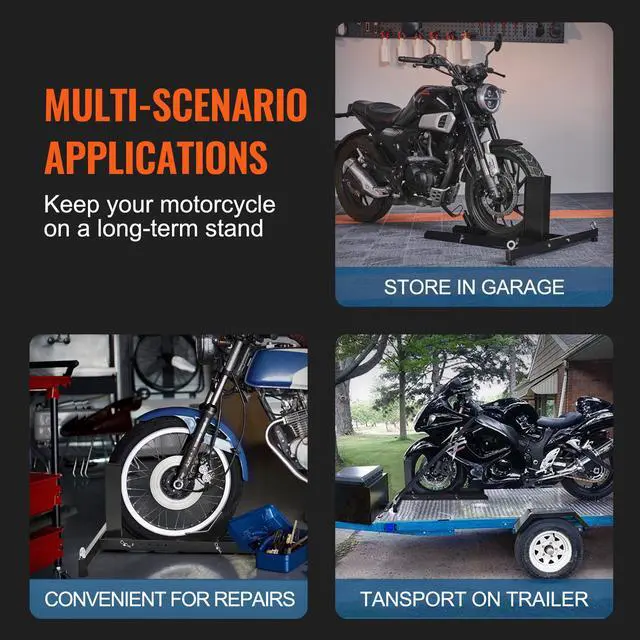 VEVOR Motorcycle Wheel Chock Upright, 1800 lbs Capacity, Heavy-duty Steel Motorcycle Front Wheel Stand with 6 Adjustable Holes, For 15"-22" Off-Road Motorcycles, Standard Motorcycles