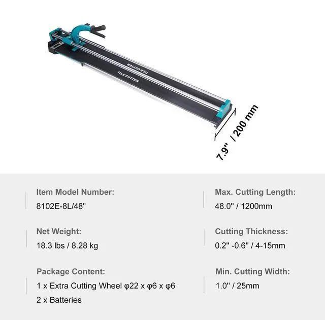 VEVOR Manual Tile Cutter, 48 inch, Porcelain Ceramic Tile Cutter with Tungsten Carbide Cutting Wheel, Infrared Positioning, Anti-Skid Feet, Double Rails for professional installers or beginners