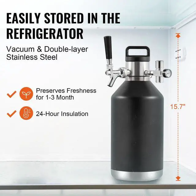 VEVOR Beer Growler Tap System, 128Oz 4L Mini Keg, 304 Stainless Steel Pressurized Beer Growler, Keg Growler with Pressure Display, CO2 Regulator Faucet, Leak-Proof Ring For Draft, Homebrew, Craft Beer