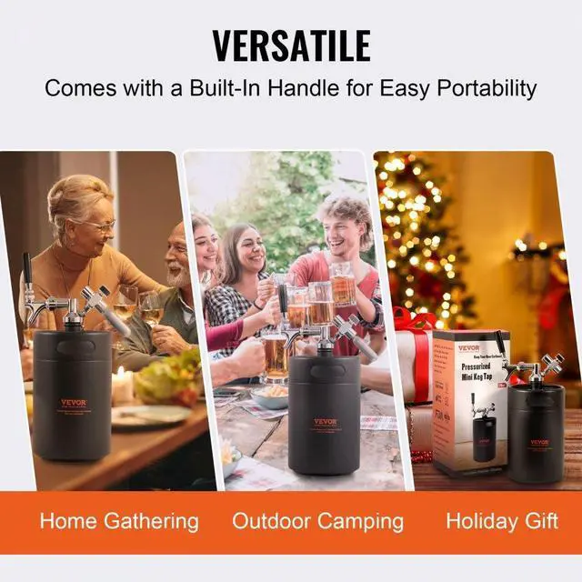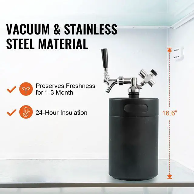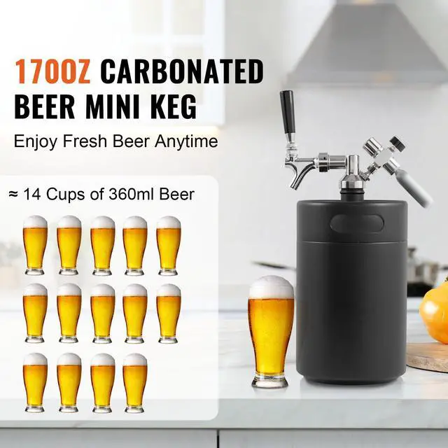VEVOR Beer Growler Tap System, 170Oz 5L Mini Keg, 304 Stainless Steel Pressurized Beer Growler, Keg Growler with Pressure Display, CO2 Regulator Faucet, Leak-Proof Ring For Draft, Homebrew, Craft Beer