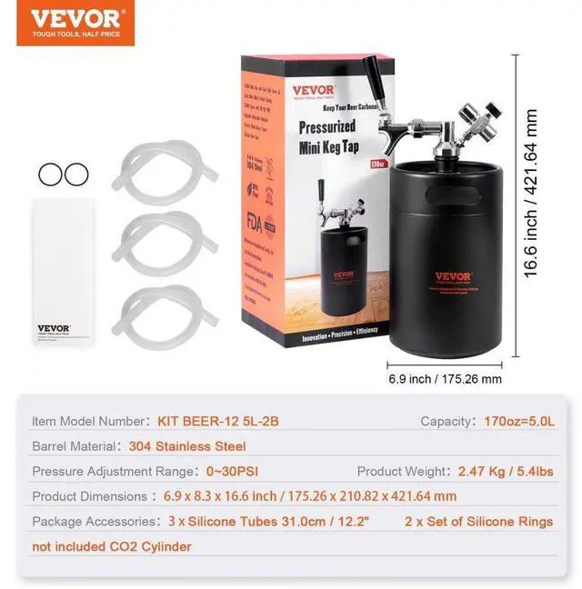 Faucet Handle Material: Rubberwood,Capacity: 170oz / 5L,Pressure Adjustment Range0~30PSI:,Item Model Number: KIT BEER-12 5L-2B,Product Weight: 2.47 Kg / 5.4 lbs
