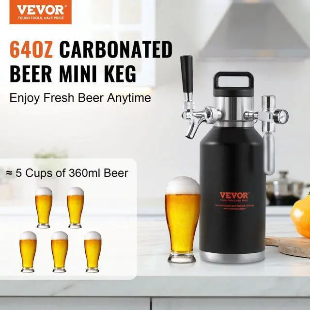 VEVOR Beer Growler Tap System, 64Oz 1.89L Mini Keg, 304 Stainless Steel Pressurized Beer Growler, Keg Growler with Pressure Display, CO2 Regulator Faucet, Leak-Proof Ring For Draft Homebrew Craft Beer