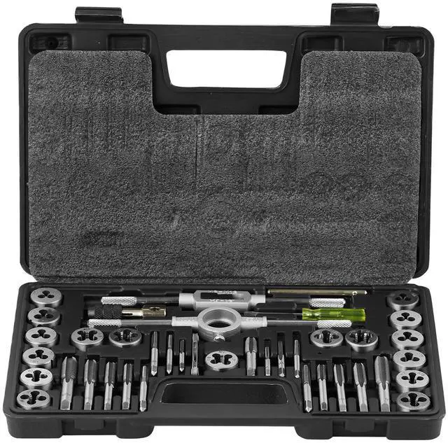 Tap and Die Hardness: HRC55-62,Tap and Die Material: Zinc Alloy,Item Model Number: 40PC,Material: Bearing Steel,Carrying Case Material: PE Plastic