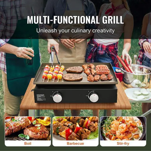 VEVOR Commercial Griddle, 22.4" Heavy Duty Manual Flat Top Griddle, Countertop Gas Grill with Non-Stick Cooking Plate, Steel LPG Gas Griddle, H-Shaped Burner Restaurant Portable Grill, 26,000 BTU