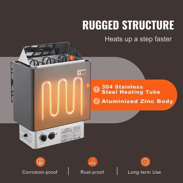 • VEVOR Sauna Heater, 4.5KW 220V Electric Sauna Stove, Steam Bath Sauna Heater with Built-In Controls, 3h Timer and Adjustable Temp for Max. 105-210 Cubic Feet, Home Hotel Spa Shower Use, FCC Certification