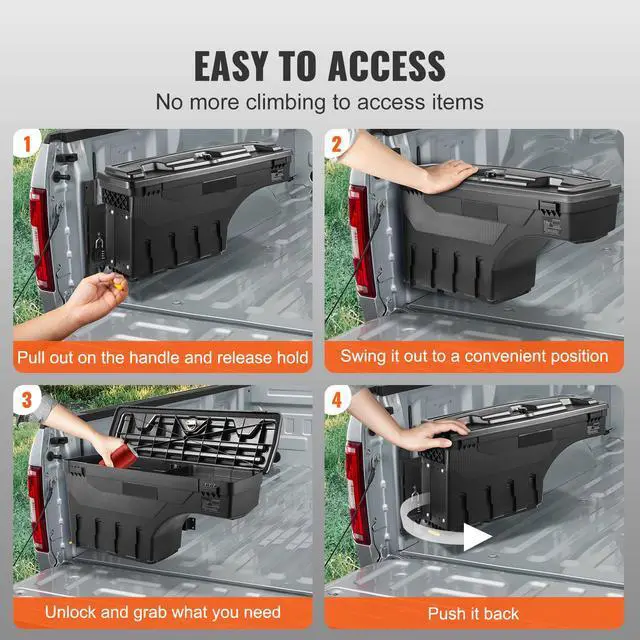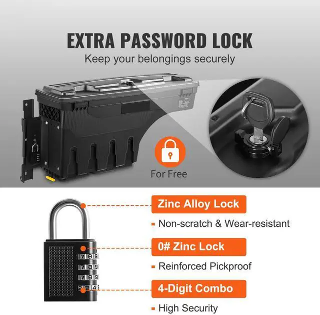 VEVOR Truck Bed Storage Box, Lockable Swing Case with Password Padlock, 6.6 Gal/25 L ABS Wheel Well Tool Box, Waterproof and Durable, Compatible with Ford F-150 2015-2021, Drivers Side