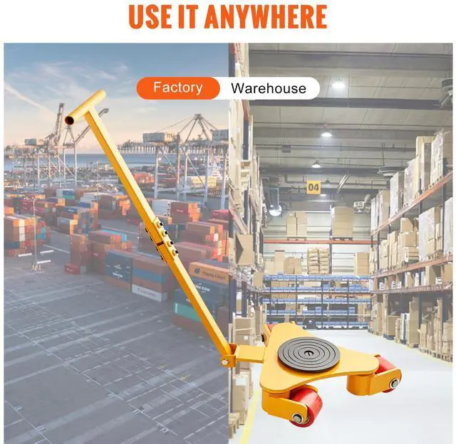 VEVOR Machinery Skate Dolly, 6614 LBS/3T Industrial Machinery Mover with Handle, Carbon Steel Machinery Moving Skate with 3 360° Swivel PU Wheels, 360° Rotation Non-Slip Cap for Warehouse, Workshop