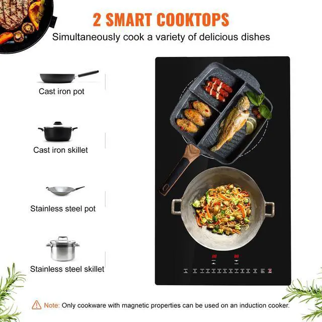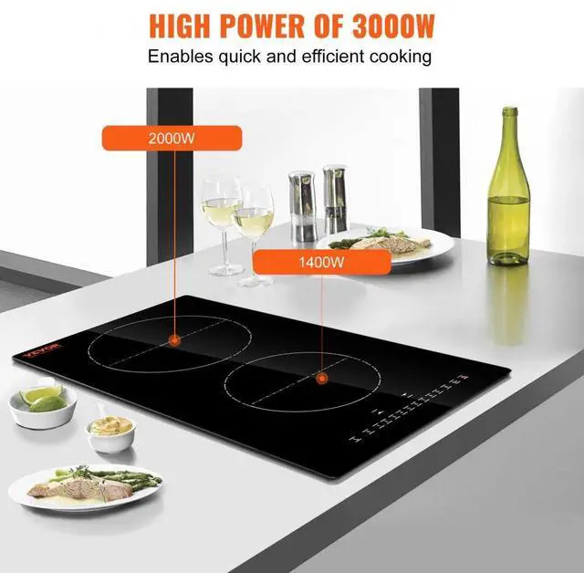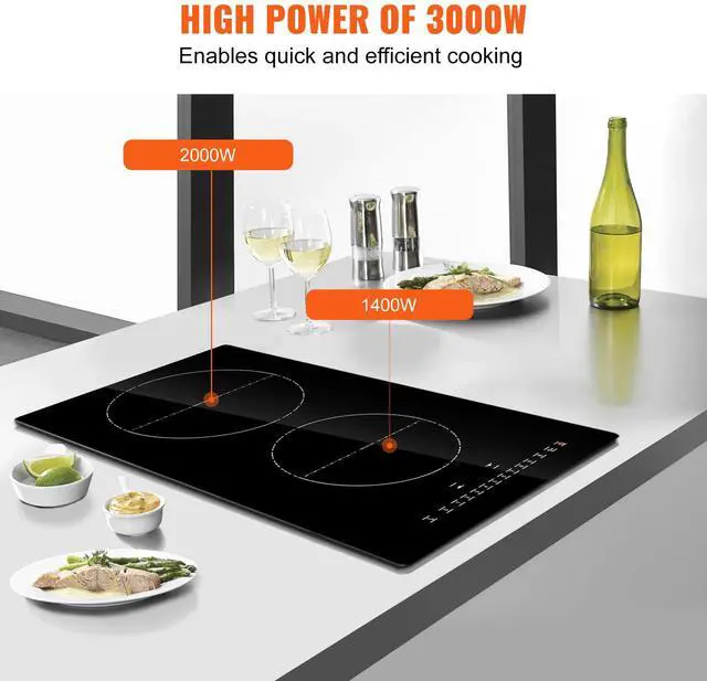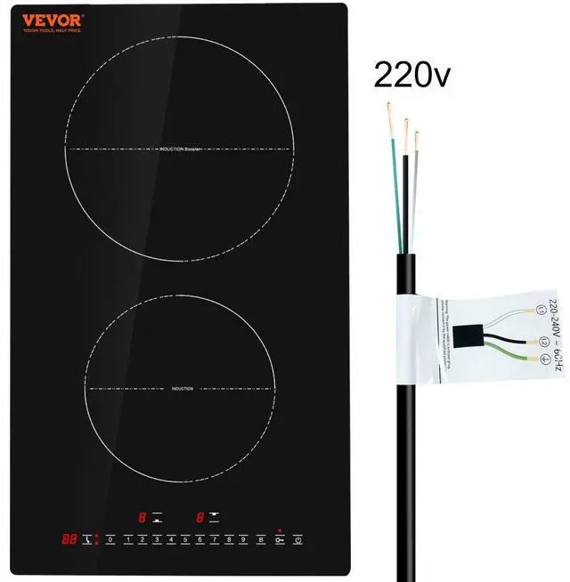 VEVOR Electric Cooktop, 2 Burners, 12'' Induction Stove Top, Built-in Magnetic Cooktop 3000W, 9 Heating Level Multifunctional Burner, LED Touch Screen w/ Child Lock & Over-Temperature Protection