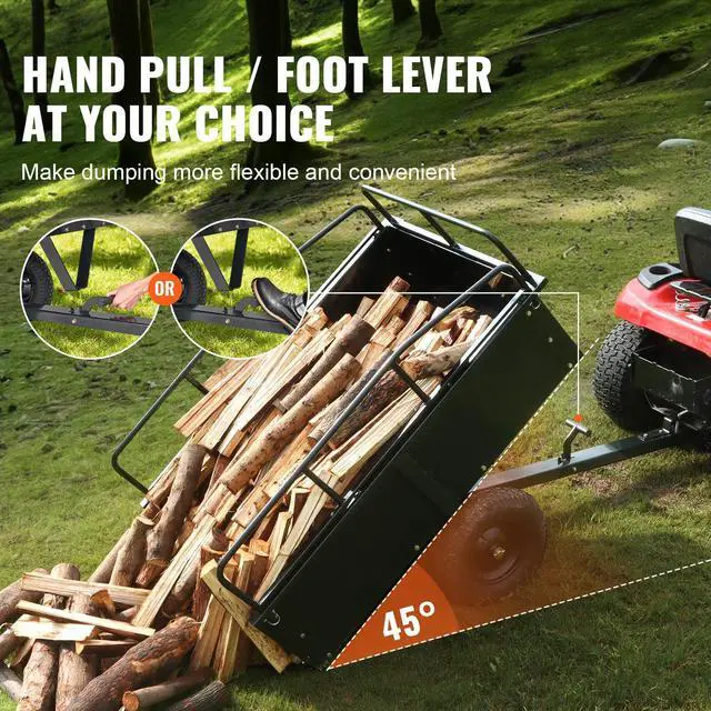 • VEVOR Heavy Duty ATV Trailer Steel Dump Cart, 750-Pound 15 Cubic Feet, Garden Utility Trailer with Removable Sides for Riding Lawn Mower Tractor