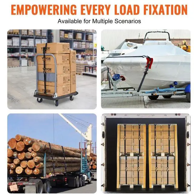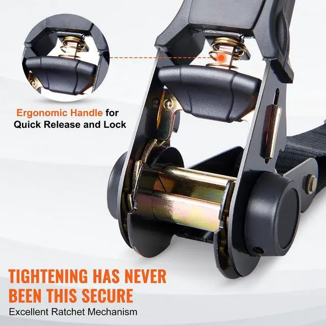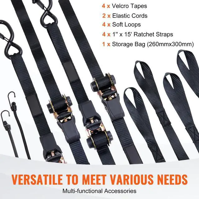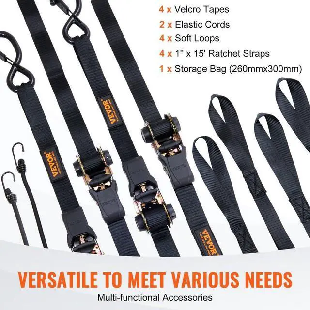 VEVOR Ratchet Tie Down Straps (4PK), 2200 lb Max Break Strength, Includes 4 Premium 1" x 15' Rachet Tie Downs with Padded Handles, for Moving Securing Cargo, Appliances, Lawn Equipment, Motorcycle