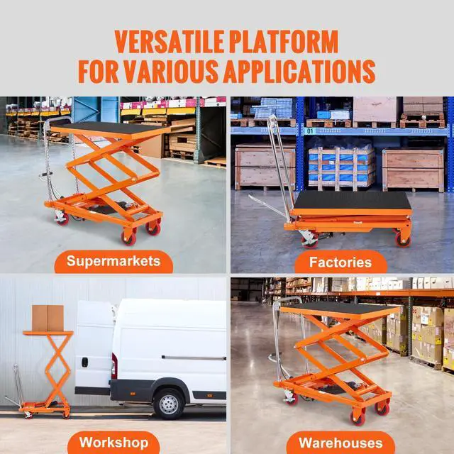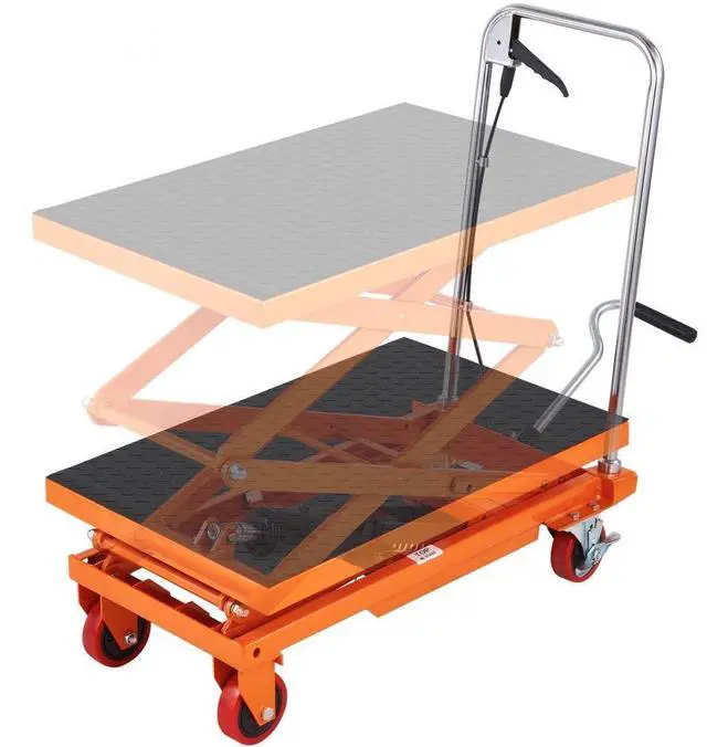 VEVOR Hydraulic Lift Table Cart, 330lbs Capacity 50" Lifting Height, Manual Double Scissor Lift Table with 4 Wheels and Non-slip Pad, Hydraulic Scissor Cart for Material Handling and Transportation