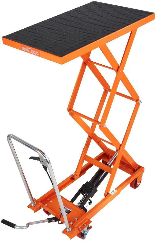 Platform Size: 28 x 18 inches /700 x 450 mm,Load Capacity: 330 lbs / 150 kg,Item Model Number: TFD15,Style: Double Scissors,Net Weight: 116.8 lbs/ 53 kg,Lift Range: 11-50 inches / 275-1270 mm,Pump: Hydraulic Pump,Main Material: Q235 Cold-Rolled Steel with Coating