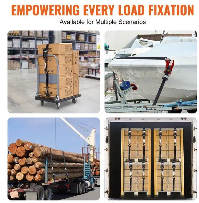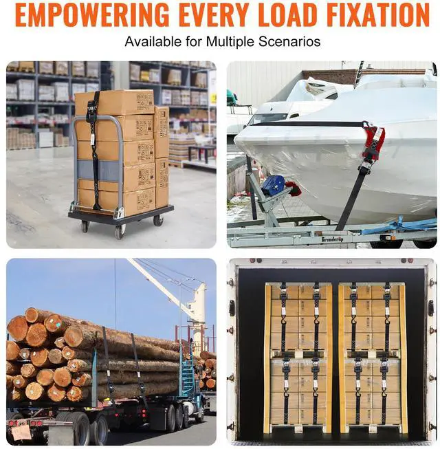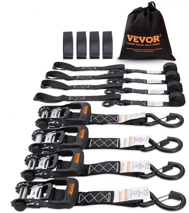 VEVOR Ratchet Tie Down Straps (4PK), 5208 lb Max Break Strength, Includes 4 Premium 1.6" x 8' Rachet Tie Downs with Padded Handles, for Moving Securing Cargo, Appliances, Lawn Equipment, Motorcycle