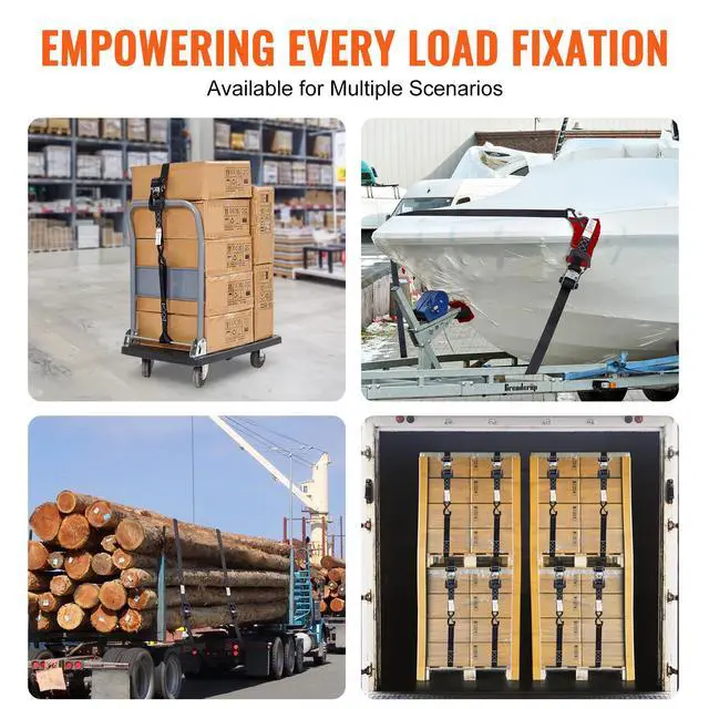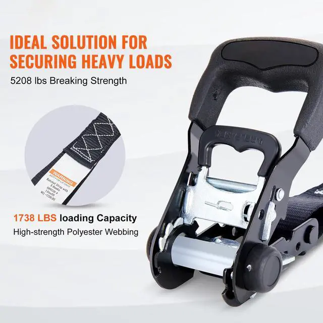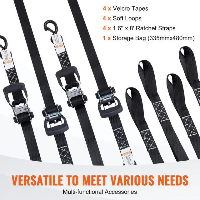 VEVOR Ratchet Tie Down Straps (4PK), 5208 lb Max Break Strength, Includes 4 Premium 1.6" x 8' Rachet Tie Downs with Padded Handles, for Moving Securing Cargo, Appliances, Lawn Equipment, Motorcycle